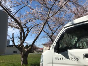 今年は桜の開花が各地で早く、当然洞爺湖畔の桜や会社に植えてある桜も連休中に綺麗に咲きました。