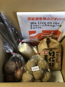 今日は洞爺湖町から委嘱された「洞爺の宝箱(野菜の詰め合わせ)」の
