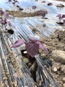 ハウスの赤紫蘇は5月の連休前には定植されていたようですが、しそジュース用の露地物はこれからになります。