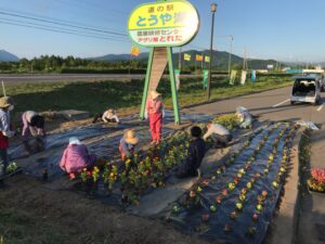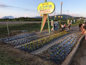 また、14日(月)は町内にある「道の駅とうや湖」で花植え作業のお手伝いに行ってきました。