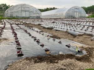 画像のように今年の赤しその定植が行われました。順調にいけば来月の中旬過ぎには収穫が始まり、現在販売を休止している「赤しそジュース」の製造が始まります。早く皆様のお手元にしそジュースが届くよう頑張ります!また、通年で提供が出来るよう収穫も頑張ります!!