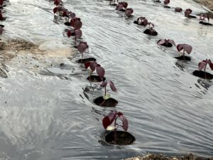 画像のように今年の赤しその定植が行われました。順調にいけば来月の中旬過ぎには収穫が始まり、現在販売を休止している「赤しそジュース」の製造が始まります。早く皆様のお手元にしそジュースが届くよう頑張ります!また、通年で提供が出来るよう収穫も頑張ります!!