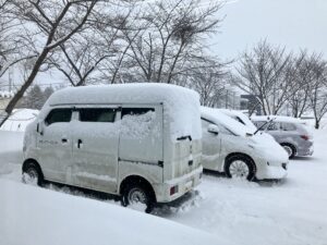 本日2回目の除雪が終わりました。社長が経営している農園から助っ人(トラクター)が来てくれたおかげで